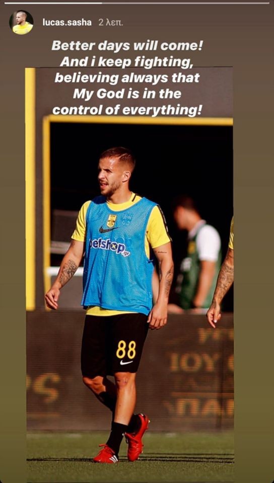 Ο ποδοσφαιριστής του Άρη έγραψε: ”Έρχονται καλύτερες μέρες. Συνεχίζω να παλεύω και να πιστεύω στον Θεό που ελέγχει τα πάντα”.