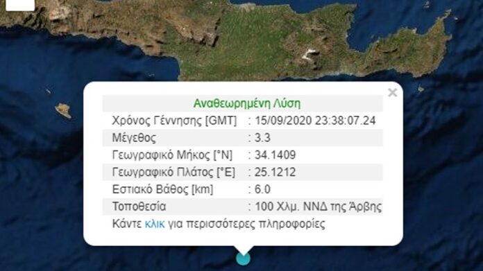 ΑρχικήΠΕΡΙΒΑΛΛΟΝΣεισμός 3,3 Ρίχτερ νότια της Κρήτης