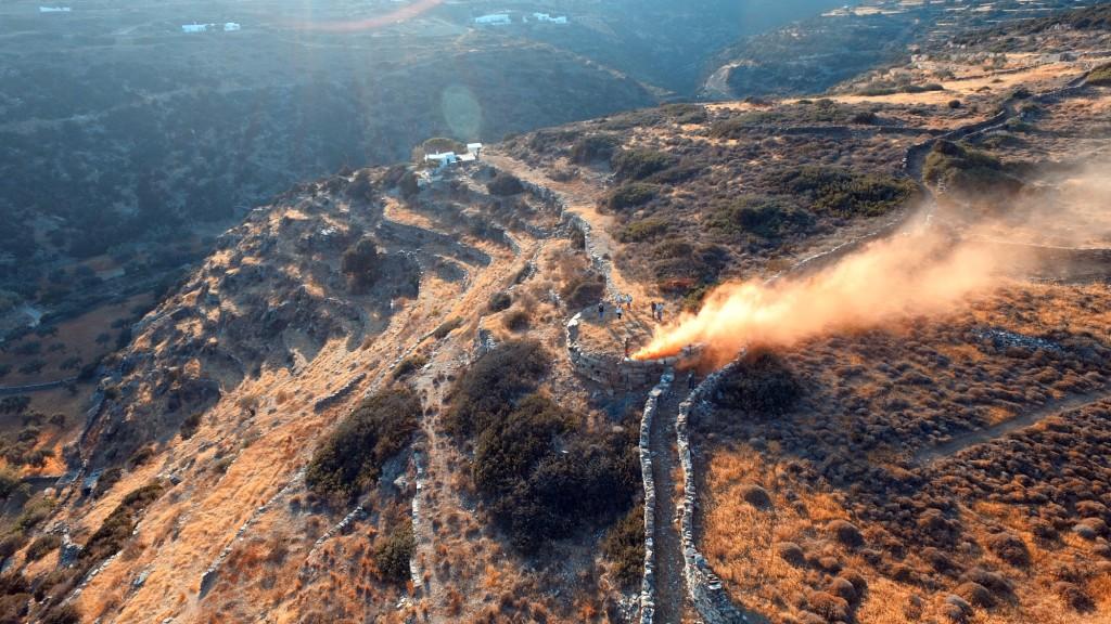 Εκατοντάδες εθελοντές κάθε ηλικίας διασκορπίστηκαν σε 69 σημεία του νησιού για να αναπαραστήσουν την αρχαία επικοινωνία μέσω προειδοποιητικών σημάτων και να στείλουν μήνυμα ελπίδας, αισιοδοξίας και συναδέλφωσης.