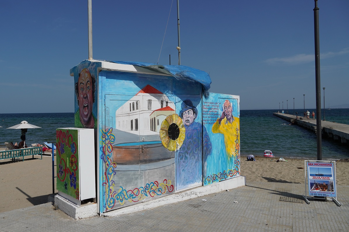 Με πρωτοβουλία της αντιδημαρχίας Πολιτισμού του δήμου Θερμαϊκού, σε μεγάλο ΚΑΦΑΟ που βρίσκεται στο λιμενοβραχίονα της Περαίας, ζωγραφίστηκε η σκηνή με το γραμμόφωνο από την ταινία του 1969 «Θου – Βου φαλακρός πράκτωρ – Επιχείρησις Γης Μαδιάμ», όπου σκηνοθέτης και πρωταγωνιστής ήταν ο Θανάσης Βέγγος.