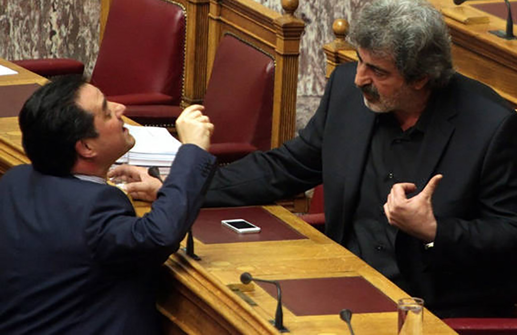 Σύμφωνα με αυτόπτες μάρτυρες, ο υπουργός Ανάπτυξης βρισκόταν με άλλους υπουργούς και βουλευτές της ΝΔ στο καφενείο του Κοινοβουλίου, όταν συναντήθηκε με τον κ. Πολάκη και άρχισαν να συζητούν σε έντονο ύφος για την υπόθεση της Novartis.