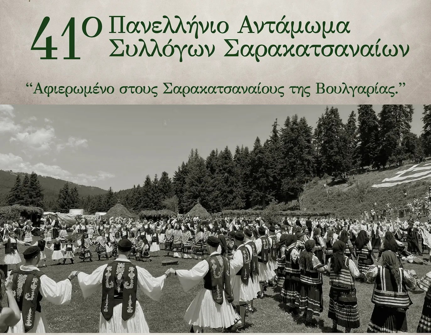 Σύμφωνα με την Πανελλήνια Ομοσπονδία, το φετινό Αντάμωμα – αφιερώνεται στους Σαρακατσαναίους της Βουλγαρίας που αποκόπηκαν από τον Εθνικό Ιστό μετά τον Εμφύλιο Πόλεμο και το κλείσιμο των συνόρων και παρόλα αυτά κρατούν άρρηκτους τους δεσμούς με την Πατρίδα την Ιστορία και την Παράδοση.