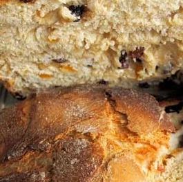 Λιώνουμε τη ζάχαρη στο λάδι και προσθέτουμε το χυμό πορτοκάλι, όπου μέσα έχουμε διαλύσει τη σόδα. Έπειτα, ρίχνουμε τα υπόλοιπα υλικά. Αλεύρι βάζουμε όσο \”πάρει\”. Στο τέλος, προσθέτουμε τις σταφίδες αλευρωμένες. Ψήνουμε το σταφιδόψωμο σε μέτριο φούρνο, περίπου 45 λεπτά.