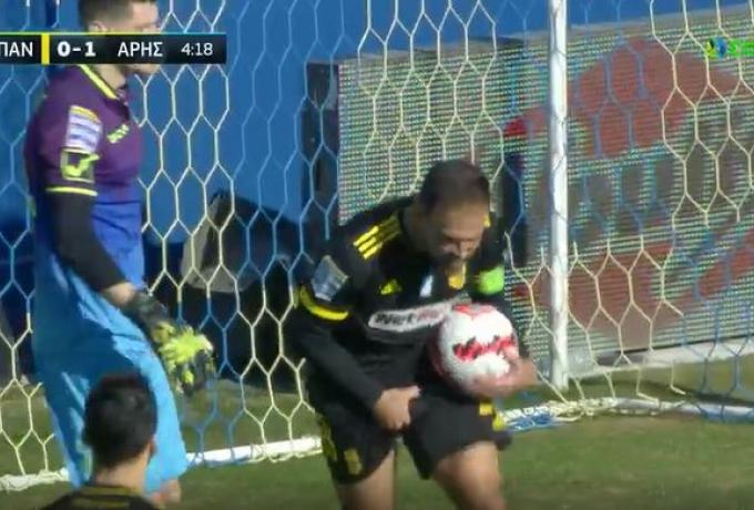 Ο Ισπανός μέσος του Άρη, αφού εκτέλεσε εύστοχα το πρώτο πέναλτι των Κιτρίνων, κάνοντας το 1-0 επί του Παναιτωλικού στο Αγρίνιο, προέβη σε μία άσχημη ενέργεια, πιάνοντας τα γεννητικά του όργανα.