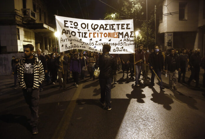 Στο Σύνταγμα ολοκληρώθηκε η αντιφασιστική πορεία που ξεκίνησε από το Εφετείο, στο πλαίσιο της συμπλήρωσης ενός χρόνου από την καταδίκη της Χρυσής Αυγής ως εγκληματικής οργάνωσης.