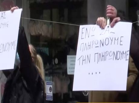 Συμβολική διαμαρτυρία για την απόφαση αναστολής επαναλειτουργίας του λιανεμπορίου στη Θεσσαλονίκη από σήμερα, λόγω covid-19, πραγματοποίησαν το πρωί καταστηματάρχες της Πολίχνης.