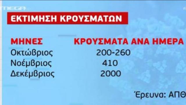 Ειδικότερα, σύμφωνα με την έρευνα, τα ημερήσια κρούσματα τον Οκτώβριο θα κυμαίνονται μεταξύ 200-260, τον Νοέμβριο θα αυξηθούν στα 410, ενώ τον Δεκέμβριο θα είναι 2000.