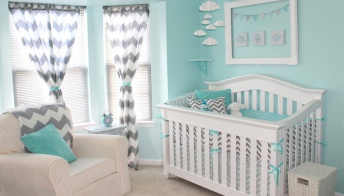 Το ανοιχτό τιρκουάζ είναι ακόμα μια απόχρωση που ταιριάζει και σε αγορίστικο και σε κοριτσίστικο βρεφικό δωμάτιο και μπορείτε εύκολα να το συνδυάσετε με άλλες αποχρώσεις. Το τιρκουάζ και το μπλε είναι δύο χρώματα που ταιριάζουν πολύ με λευκό αλλά και με παλ αποχρώσεις του ροζ, του κίτρινου, του πράσινου και του μπεζ. Το τιρκουάζ ταιριάζει, επίσης, πολύ με γκρι και μάλιστα αυτός ο συνδυασμός είναι ιδανικός για βρεφικό δωμάτιο γιατί το γκρι «σπάει» λίγο το τιρκουάζ που σαν χρώμα είναι αρκετά έντονο ακόμα και στις πιο ανοιχτές του αποχρώσεις.