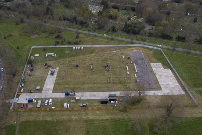 Το νεκροταφείο στην περιοχή Manor Park στα ανατολικά της πόλης βρίσκεται 4 μίλια μακριά από το νέο, προσωρινό Νοσοκομείο Nightingale της Εθνικής Υπηρεσίας Υγείας, 4.000 κλινών, που πρόκειται να ανοίξει την Παρασκευή στο κοντινό ExCeL London. κέντρο.