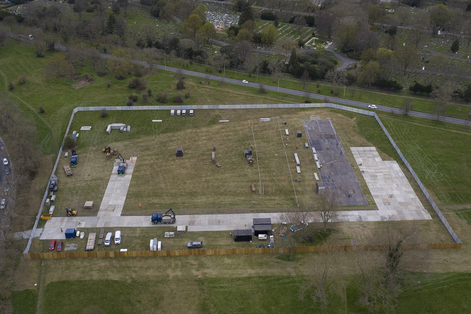 Η κατασκευή ξεκίνησε ως ένα νέο προσωρινό νεκροταφείο για τα θύματα της πανδημίας κορονοϊού σε πάρκα που χρησιμοποιούνται συνήθως για σωματική άσκηση.