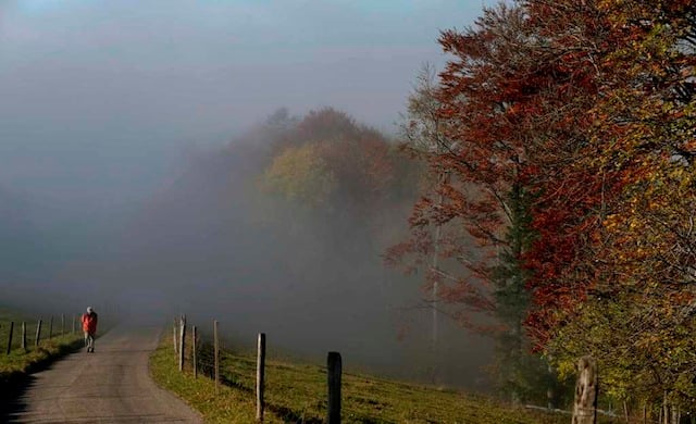 A man walks up a road to Vogelberg mountain (1204 metres/3950 ft altitude) during sunny autumn weather some 30 kilometres south of Basel October 23, 2012. Reuters/Arnd Wiegmann (SWITZERLAND – Tags: ENVIRONMENT TPX IMAGES OF THE DAY)