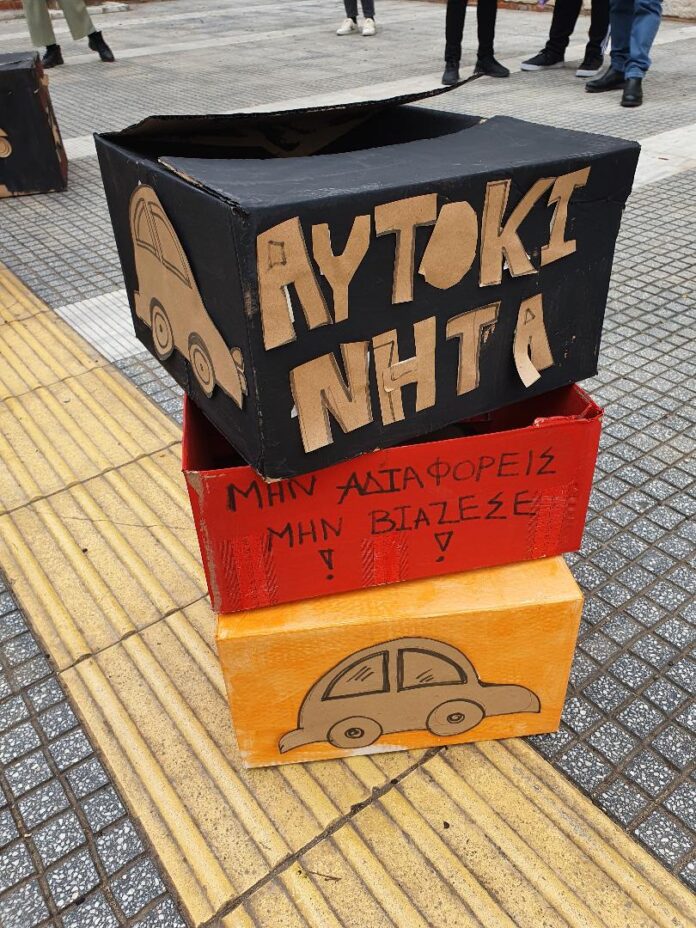 Θεσσαλονίκη: Δράση ευαισθητοποίησης από μαθητές δημοτικού που έδεσαν τα μάτια τους και προσπάθησαν να περάσουν εικονικά εμπόδια στο δρόμο