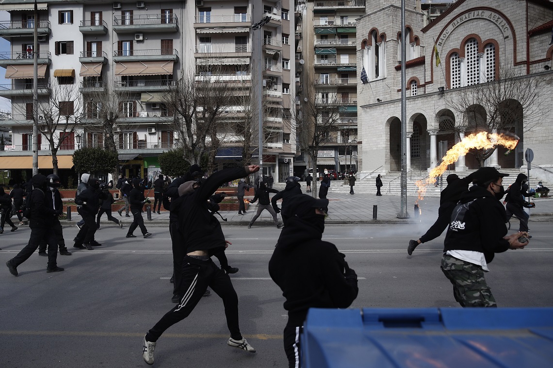 Ένταση επικράτησε πριν από λίγο στο κέντρο της Θεσσαλονίκης, όταν με την ολοκλήρωση της πορείας κατά της επιχείρησης εκκένωσης της κατάληψης του ΑΠΘ, μια ομάδα ατόμων αποκόπηκε από το κύριο σώμα των διαδηλωτών και κινήθηκε προς τον αστυνομικό φραγμό που βρισκόταν απέναντι από την Καμάρα με κλούβες και ισχυρή αστυνομική δύναμη, και άρχισε να πετάει μολότοφ και πέτρες.