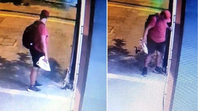 Η πράξη του που έγινε στα τέλη Αυγούστου, καταγράφηκε σε κλειστό κύκλωμα διπλανού καταστήματος και το βίντεο ήρθε στην κατοχή της φιλοζωικής οργάνωσης που προχώρησε στη συνέχεια στην καταγγελία του γεγονότος στην αστυνομία .