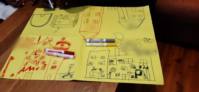 Στο πλαίσιο εκπαιδευτικής δραστηριότητας που διοργάνωσε η κοινωνική λειτουργός της ΑΡΣΙΣ Αντιγόνη Αλεξίου και με τη βοήθεια διερμηνέων, γυναίκες αιτούσες άσυλο και μικρά προσφυγόπουλα κλήθηκαν, με τη βοήθεια διερμηνέων, ν’ απαντήσουν με λέξεις και ζωγραφιές ποιο είναι το συναισθηματικό φορτίο που συμπυκνώνει γι’ αυτούς η λέξη «σπίτι».