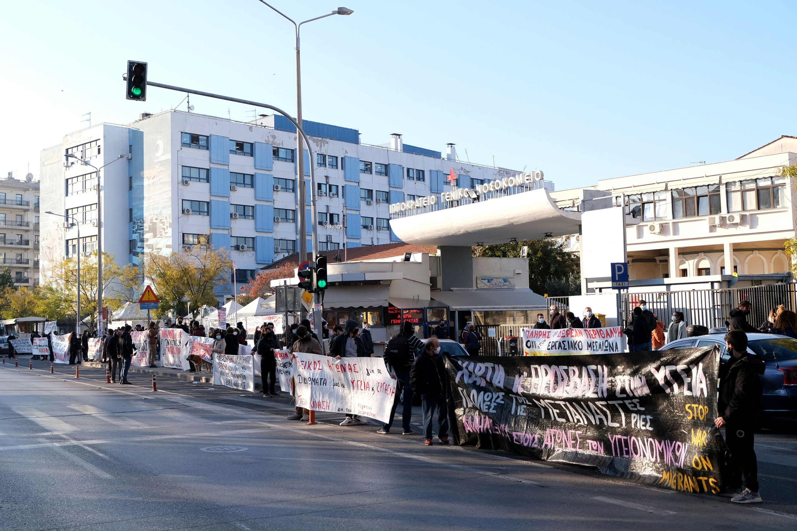 Το πρωί, έγιναν συμβολικές συγκεντρώσεις υγειονομικών στα προαύλια και άλλων νοσοκομείων της πόλης.