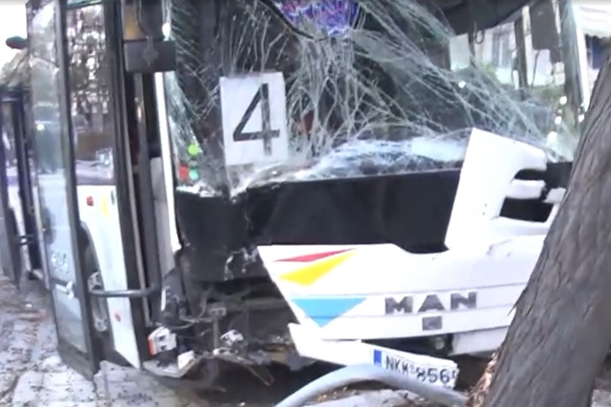 Το λεωφορείο εξετράπη της πορείας του και στη συνέχεια έπεσε σε δέντρο. Από τη σύγκρουση τραυματίστηκε ο οδηγός του ταξί.