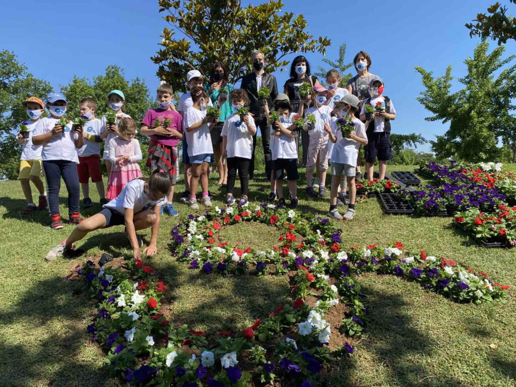 Ειδικότερα, μαθητές του Γαλλικού Σχολείου, με τη βοήθεια των ανθρώπων του τομέα πρασίνου του Δήμου Θεσσαλονίκης, σχημάτισαν το χαρακτηριστικό “θ” -σύμβολο της Θεσσαλονίκης- με λουλούδια στα χρώματα της γαλλικής σημαίας.
