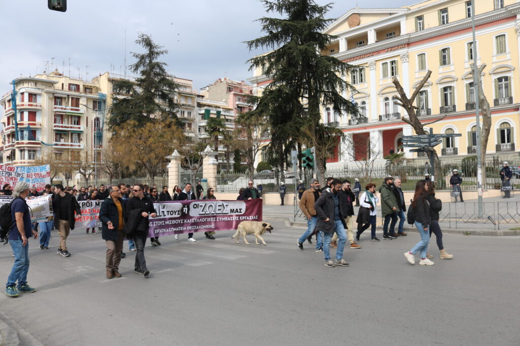 Στην πορεία συμμετείχαν φοιτητές, εργαζόμενοι, σωματεία, συνταξιούχοι, ενώ δεν ήταν λίγοι και όσοι πήραν μαζί και τα παιδιά τους. Λίγο πριν την έναρξη της πορείας στο Άγαλμα Βενιζέλου τηρήθηκε ενός λεπτού σιγή για τα θύματα του δυστυχήματος. Η πορεία ξεκίνησε από την πλατεία Αριστοτέλους και κινήθηκε μέσω της Εγνατίας στο Ν.Σ. Σταθμό και από εκεί κατευθύνθηκε στο ΥΜΑΘ, για να ολοκληρωθεί λίγο μετά το Ι.Ν. Αγίου Δημητρίου.
