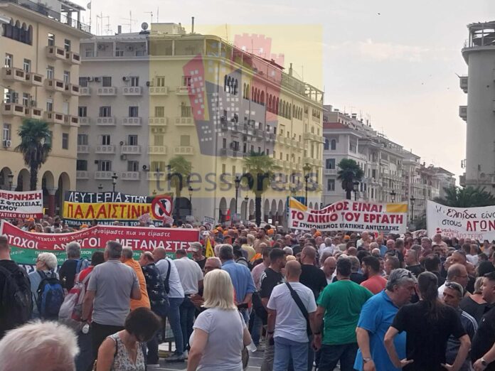 Ολοκληρώθηκε πριν από λίγη ώρα η πορεία των εργατικών σωματείων η οποία στηρίζεται από το ΠΑΜΕ. Χιλιάδες κόσμου συγκεντρώθηκαν αρχικά στην πλατεία της ΧΑΝΘ όπου απηύθηναν χαιρετισμούς εκπρόσωποι των εργαζομένων της ΛΑΡΚΟ, των μεταλλωρύχων Χαλκιδικής, της Πανελλαδικής επιτροπής μπλόκων αγροτών, αυτοαπασχολούμενων, της Παλαιστινιακής παροικίας και από την Πανελλαδική Ομοσπονδία Εργαζομένων στα εμφιαλωμένα ποτά ενώ η κεντρική ομιλία έγινε από τον Θανάση Κουτσουρά, γραμματέα του Συνδικάτου οικοδόμων Θεσσαλονίκης και μέλος διοίκησης του ΕΚΘ.