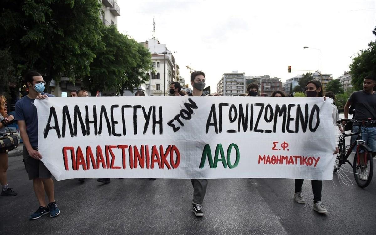 Πορεία αλληλεγγύης στους Παλαιστίνιους και κατά των στρατιωτικών επιχειρήσεων των Ισραηλινών, πραγματοποίησαν απόψε στη Θεσσαλονίκη μέλη συλλογικοτήτων και κινήσεων της εξωκοινοβουλευτικής Αριστεράς, φοιτητές και άτομα του ευρύτερου αντιεξουσιαστικού χώρου.