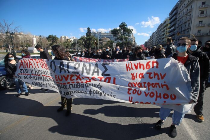 Πορεία διαμαρτυρίας σχετικά με το νόμο για τα ΑΕΙ πραγματοποιήθηκε στη Θεσσαλονίκη.