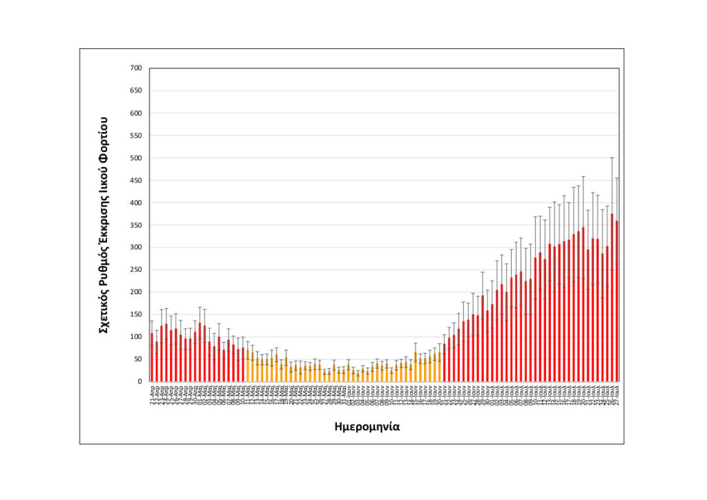 Όπως φαίνεται στα διαγράμματα που παρουσιάζει το ΑΠΕ-ΜΠΕ (επισυνάπτονται) από τα μέσα Ιουλίου και μετά παρατηρούνται διακυμάνσεις μεταξύ των μετρήσεων και περιοδικές εξάρσεις στη συγκέντρωση του ιικού φορτίου γύρω από ένα σχετικά σταθερό επίπεδο, ενώ η ερευνητική ομάδα του ΑΠΘ συνεκτιμά τις σημαντικές πληθυσμιακές μεταβολές που χαρακτηρίζουν την θερινή περίοδο, λόγω των διαρκών μετακινήσεων πολιτών από και προς την πόλη.