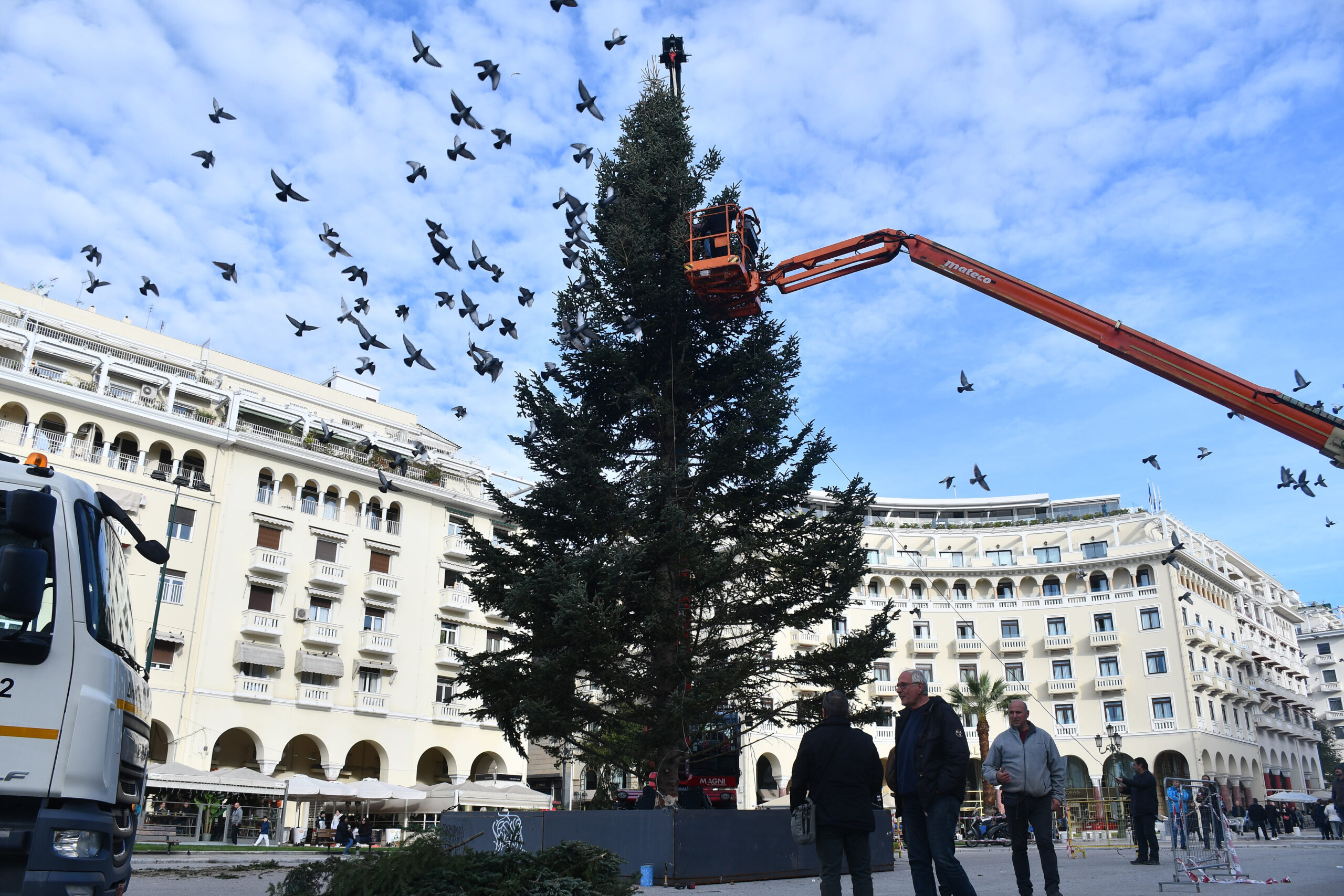 Στην πλατεία και στον άξονα της Αριστοτέλους έχει αρχίσει να διαμορφώνεται ένα γιορτινό σκηνικό. Το κεντρικό δέντρο που κοσμεί την πλατεία ταξίδεψε από τον Ταξιάρχη της Χαλκιδικής, είναι ύψους 18 μέτρων και φωτίζεται με περίπου 50.000 λαμπιόνια led.