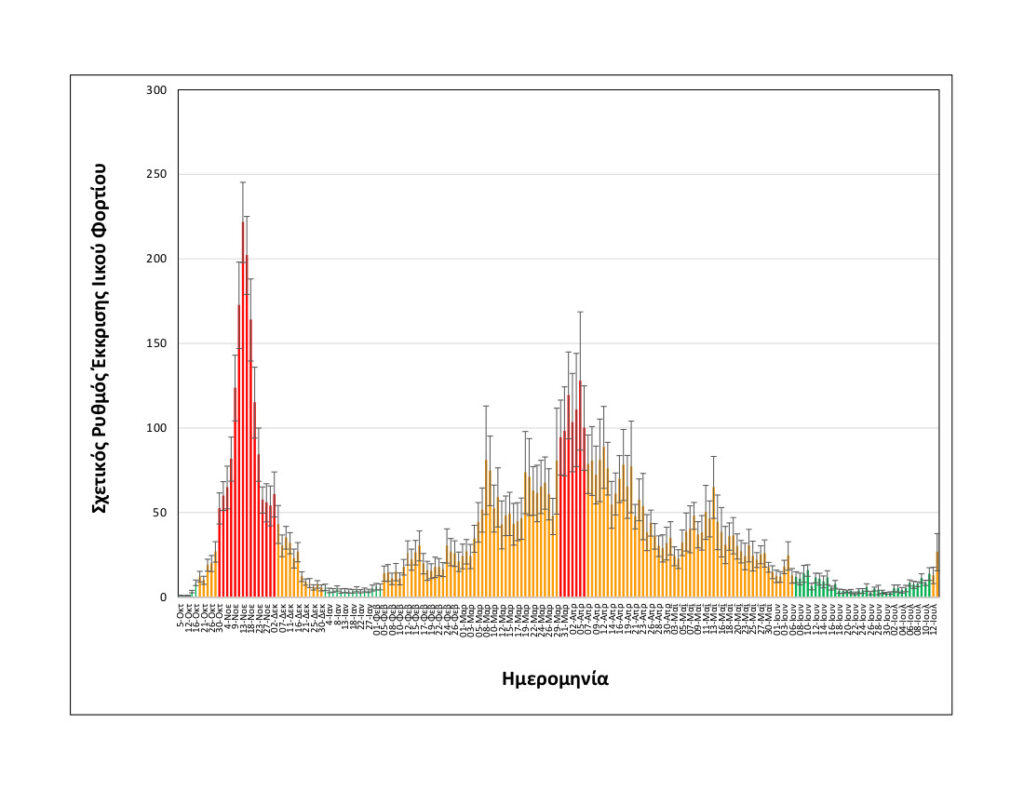 «Οι τιμές των περιβαλλοντικών παραμέτρων του δείγματος βρίσκονται σε φυσιολογικά επίπεδα και έτσι δεν απαιτείται δραστικός εξορθολογισμός της μέτρησης του ιικού φορτίου. Επομένως, η μεγάλη αύξηση στην τιμή της σχετικής έκκρισης ιικού φορτίου την Τρίτη 13/7 δεν μπορεί να αποδοθεί σε διαφορές των ποιοτικών χαρακτηριστικών του λύματος. Όλα τα πειραματικά στοιχεία συνηγορούν στο ότι η Θεσσαλονίκη εισέρχεται στο 4ο κύμα της πανδημίας», σημείωσε ο κ.Καραπάντσιος.