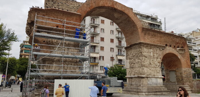 Άρχισαν από σήμερα να μπαίνουν οι σκαλωσιές για τις εργασίες συντήρησης των γλυπτών της Αψίδας του Γαλερίου.