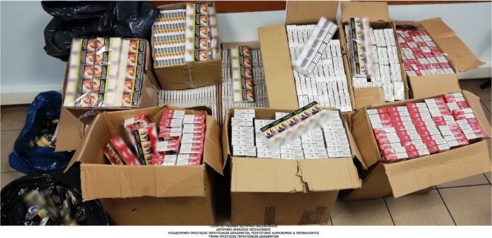 Δύο άτομα συνελήφθησαν και κατασχέθηκαν περίπου 5.000 λαθραία πακέτα τσιγάρα και συσκευασίες καπνού, από αστυνομικούς του Τμήματος Προστασίας Περιουσιακών Δικαιωμάτων της Διεύθυνσης Ασφάλειας Θεσσαλονίκης, στο πλαίσιο ειδικού επιχειρησιακού σχεδιασμού για την καταπολέμηση του φαινομένου της παράνομης διακίνησης λαθραίων καπνικών προϊόντων.