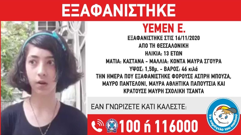 Συναγερμός σήμανε στις Αρχές της Θεσσαλονίκης για την εξαφάνιση της 13χρονης Υεμέν Ε.