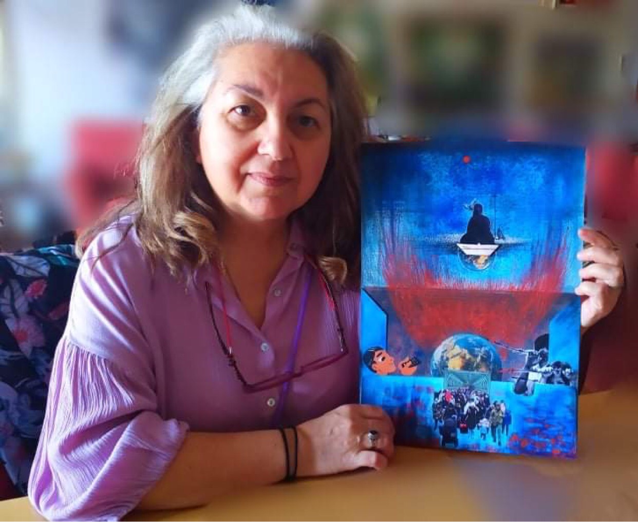 “Στην αρχή του πρότζεκτ δεν υπήρχε καν στις σκέψεις μας ότι θα ξεσπούσε ένας πόλεμος στην Ευρώπη, και όταν ξεκίνησε, οι καλλιτέχνες αποτύπωσαν τη φρίκη του νέου ξεριζωμού στην Ουκρανία. Αυτή την στιγμή ο κόσμος γέμισε ξανά πρόσφυγες, μετανάστες, ανθρώπους που χάνουν το βιός και την πατρίδα τους”, λέει η Σοφία Αμπερίδου και συνεχίζει: “Από τα πιο σημαντικά και συγκινητικά εκθέματα της έκθεσης είναι οι κάρτες με κοσμήματα εποχής, που στάλθηκε από το Μουσείο «Βεριζίτσα», στο χωριό Άνω Σιροβάτκα της Ουκρανίας. Είναι σαν να μας λένε σώστε τον πολιτισμό μας. Σώστε την ανθρωπότητα. Έτσι, με τη συγκυρία του σημερινού πολέμου και τους πρόσφυγες της Ουκρανίας, διαπιστώνεις πως ο πόλεμος είναι ένας ζωντανός εφιάλτης”.