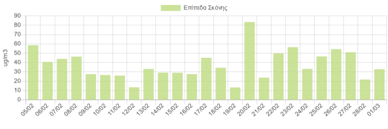 Τα αποτελέσματα που προέκυψαν από τις μετρήσεις αιωρούμενων σωματιδίων στον Σταθμό Μέτρησης Αερίων Ρύπων Ευκαρπίας κατά τον μήνα Φεβρουάριο 2021.