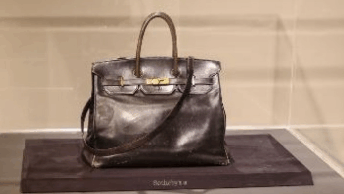 Η πρώτη τσάντα Birkin του οίκου Hermès, που σχεδιάστηκε ειδικά για την ηθοποιό και τραγουδίστρια Τζέιν Μπίρκιν, πουλήθηκε σήμερα σε δημοπρασία έναντι 8,582 εκατομμυρίων ευρώ.