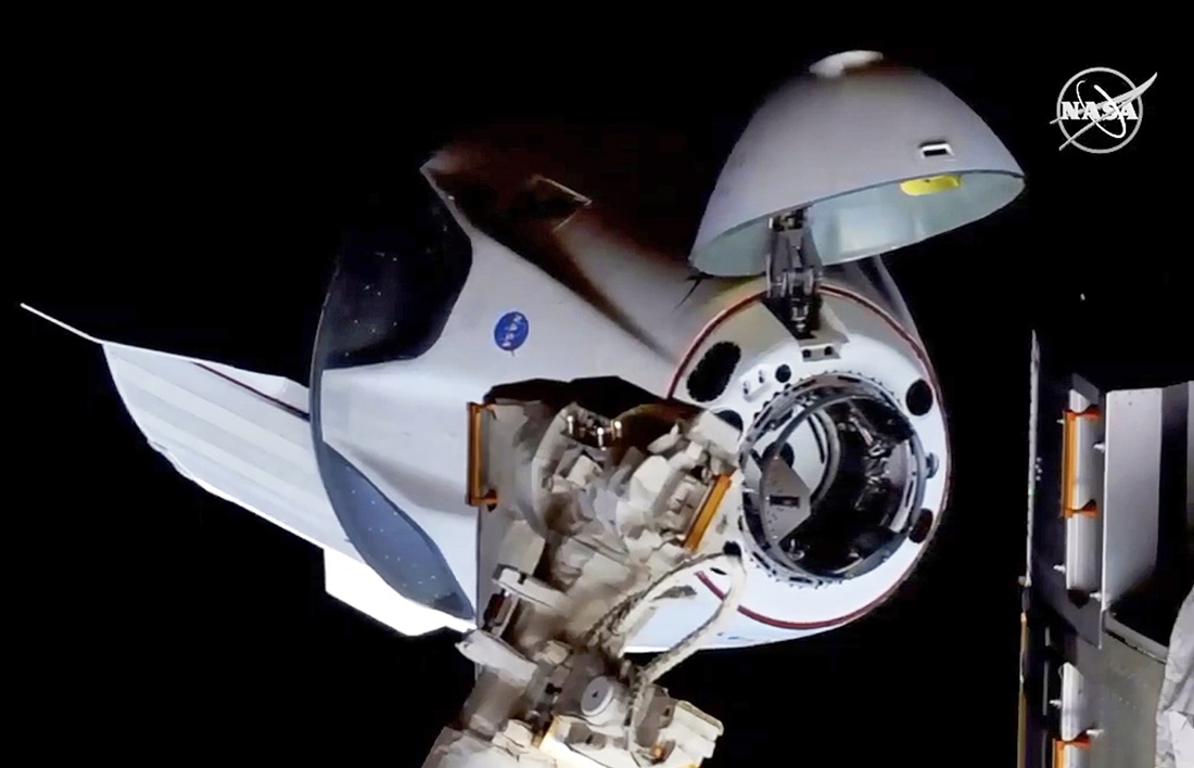 Το διαστημόπλοιο της SpaceX Crew Dragon έφθασε στον Διεθνή Διαστημικό Σταθμό, όπου και προσδέθηκε χωρίς προβλήματα, λίγα λεπτά νωρίτερα από το πρόγραμμα, μεταφέροντας τους δύο αστροναύτες της NASA και ολοκληρώνοντας με επιτυχία ένα κρίσιμο βήμα της διαστημικής αποστολής.