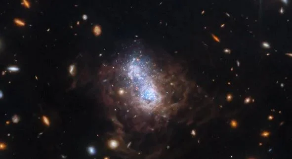 Μία ακόμη εντυπωσιακή εικόνα από το Σύμπαν κατέγραψε το διαστημικό τηλεσκόπιο James Webb φωτίζοντας παράλληλα διάφορες κοσμικές διεργασίες όπως μαζική αστρογένεση. Ο γαλαξίας, που ονομάζεται I Zwicky 18 (I Zw 18), βρίσκεται περίπου 59 εκατομμύρια έτη φωτός μακριά από τη Γη. Είναι ταξινομημένος ως ένας νάνος ακανόνιστος γαλαξίας, που σημαίνει ότι είναι πολύ μικρότερος και λιγότερο δομημένος από τον γαλαξία μας.