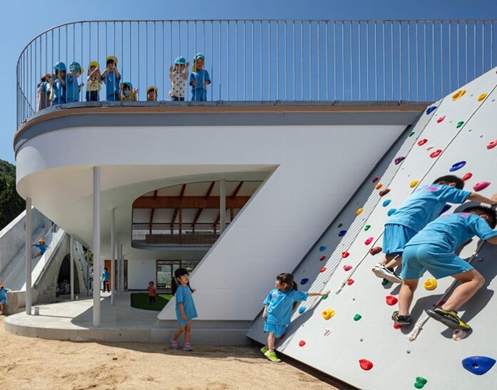 Το «Tesoro» -φέρνει στον νου την ιταλική λέξη για «κουτί με θησαυρούς»-, δημιούργημα του ιαπωνικού στούντιο Aisaka Architects’ Atelier, είναι ένα παιχνιδιάρικο αρχιτεκτόνημα που επιτρέπει σε 90 μικρά να παίζουν ελεύθερα. Ο ιδιωτικός δρόμος πρόσβασης σε αυτό είναι ενσωματωμένος στο περίκλειστο νηπιαγωγείο, ενώ οι τάξεις είναι υπερυψωμένες σε σχέση με το δρόμο, βρισκόμενες στον δεύτερο όροφο. Η όλη διάταξη περικλείει έναν μεγάλο χώρο για υπαίθριο παιχνίδι.