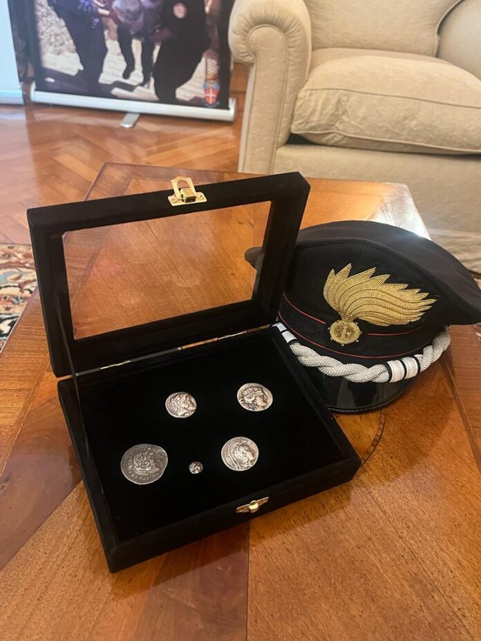 Το Σώμα των καραμπινιέρων, ειδικευμένο στην καταπολέμηση του παράνομου εμπορίου έργων τέχνης και αρχαιολογικής κληρονομίας, κατέσχεσε και επέστρεψε στην Ελλάδα, μέσω της πρέσβεως στην Ιταλία, Ελένης Σουρανή, πέντε αρχαιοελληνικά νομίσματα, τα οποία είχαν τεθεί προς πώληση στο διαδίκτυο έναντι 1.500 ευρώ. Σύμφωνα με πληροφορίες, ο ιδιώτης που κατείχε παράνομα τα νομίσματα δεν είχε αντιληφθεί την πραγματική αξία τους.