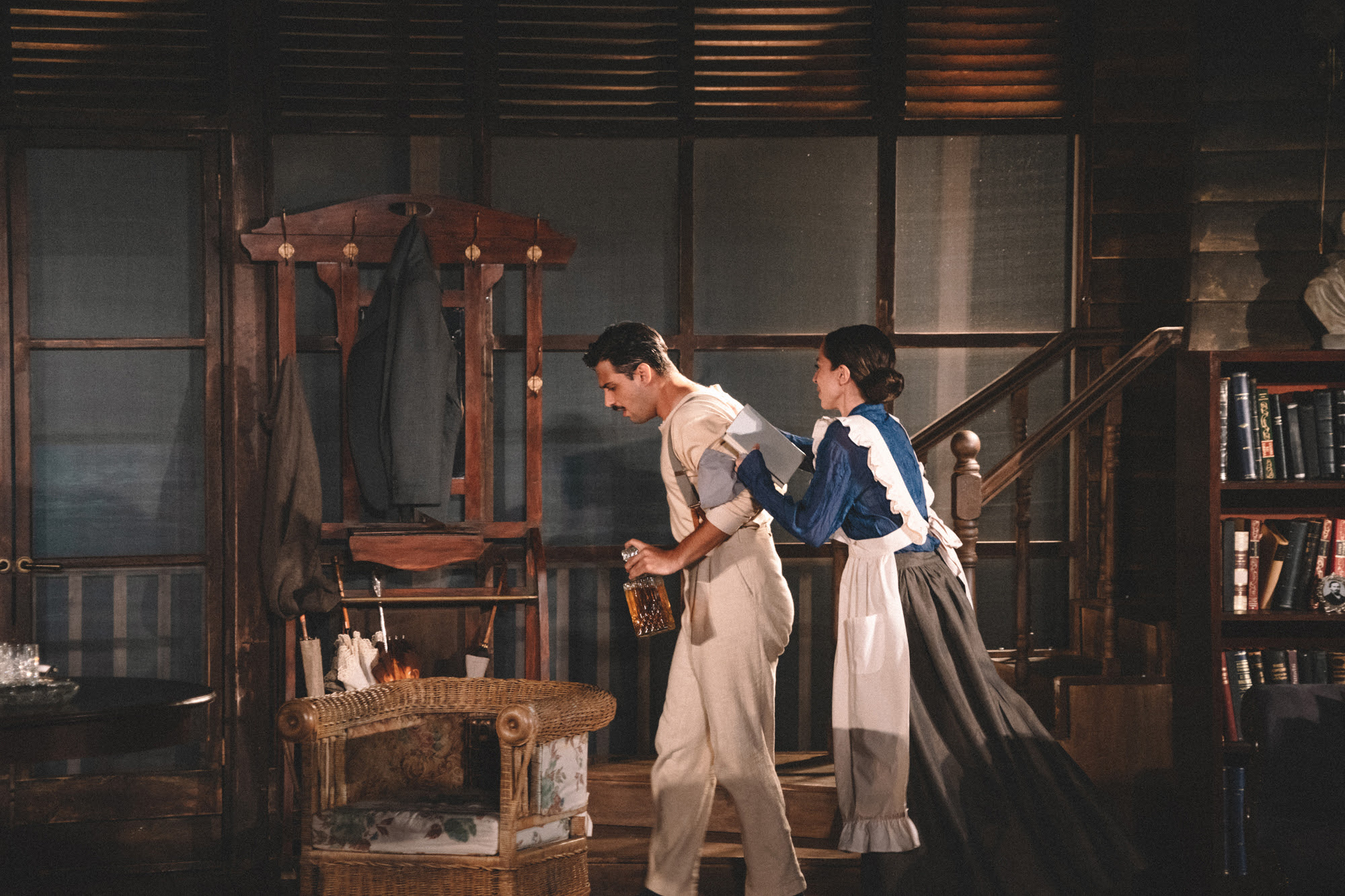 Τα σκηνικά υπογράφει η Άση Δημητρολοπούλου, τα κοστούμια η Μπιάνκα Νικολαρεΐζη, τη μουσική ο Κωνσταντίνος Ευαγγελίδης και τους φωτισμούς ο Λευτέρης Παυλόπουλος. Παίζουν οι ηθοποιοί: Πέρης Μιχαηλίδης (Τζέιμς Τάιρον), Βέρα Κρούσκα (Μαίρη Κάβαν Τάιρον), Θανάσης Σαράντος (Τζέϊμς Τάιρον Τζούνιορ), Χρήστος Διαμαντούδης (Έντμοντ Τάιρον) και Σταυριάνα Παπαδάκη (Κάθλιν).