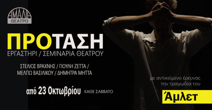 Με γνώμονα την ανίχνευση της θεατρικής πράξης και την έρευνα, το Θέατρο Αμαλία αναθέτει στον πλέον ταλαντούχο σκηνοθέτη της νέας γενιάς Στέλιο Βραχνή, την δημιουργία ενός ετήσιου Εργαστηρίου με μαθήματα υποκριτικής, ορθοφωνίας, κινησιολογίας, δραματολογίας, ιστορίας θεάτρου και με μηνιαία σεμινάρια υποκριτικής από καταξιωμένους καλλιτέχνες της χώρας. Φέτος αντικείμενο έρευνας αποτελεί η τραγωδία του Άμλετ του William Shakespeare και με αφορμή αυτή οι συμμετέχοντες θα έχουν την ευκαιρία να μελετήσουν εις βάθος ένα από τα σπουδαιότερα κείμενα της παγκόσμιας δραματουργίας και να ανοίξουν τη σχέση τους με το λόγο, το σώμα και τον άλλον. Στόχο αποτελεί το ανέβασμα του έργου στη σκηνή του Θεάτρου Αμαλία τον Ιούνιο του 2022 σε σκηνοθεσία του Στέλιου Βραχνή.