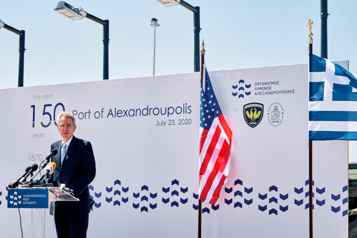 Ερωτηθείς για την Αλεξανδρούπολη και τη διαδικασία ιδιωτικοποίησης του λιμανιού της, που βρίσκεται σε εξέλιξη, ο Αμερικανός πρέσβης υπογράμμισε πως πρόκειται για ένα «στρατηγικό περιουσιακό στοιχείο που θέλουμε να παραμείνει σε δυτικά χέρια». Χαρακτήρισε «καλά νέα» το γεγονός ότι υπάρχουν «δύο ισχυρές αμερικανικές κοινοπραξίες που έχουν επιδείξει ενδιαφέρον» και είπε πως για τον ίδιο η Αλεξανδρούπολη αποτελεί ειδική προτεραιότητα.
