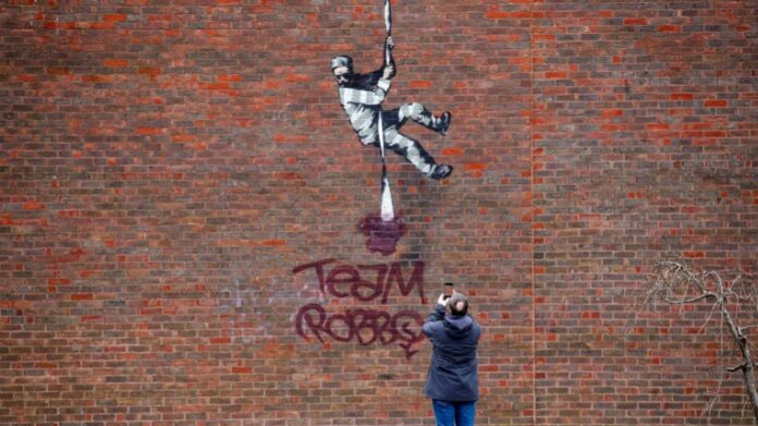 H πρόσφατη τοιχογραφία του γνωστού street artist Banksy στη φυλακή Ρήντινγκ με τίτλο “Η Μεγάλη Απόδραση” δεν έμεινε, τελικά, αλώβητη. Ο καλλιτέχνης είχε αναπαραστήσει στο έργο του έναν φυλακισμένο στην προσπάθεια του να αποδράσει με τη βοήθεια ενός σκοινιού, φτιαγμένου από χαρτί που ξετυλίγεται από μία γραφομηχανή.