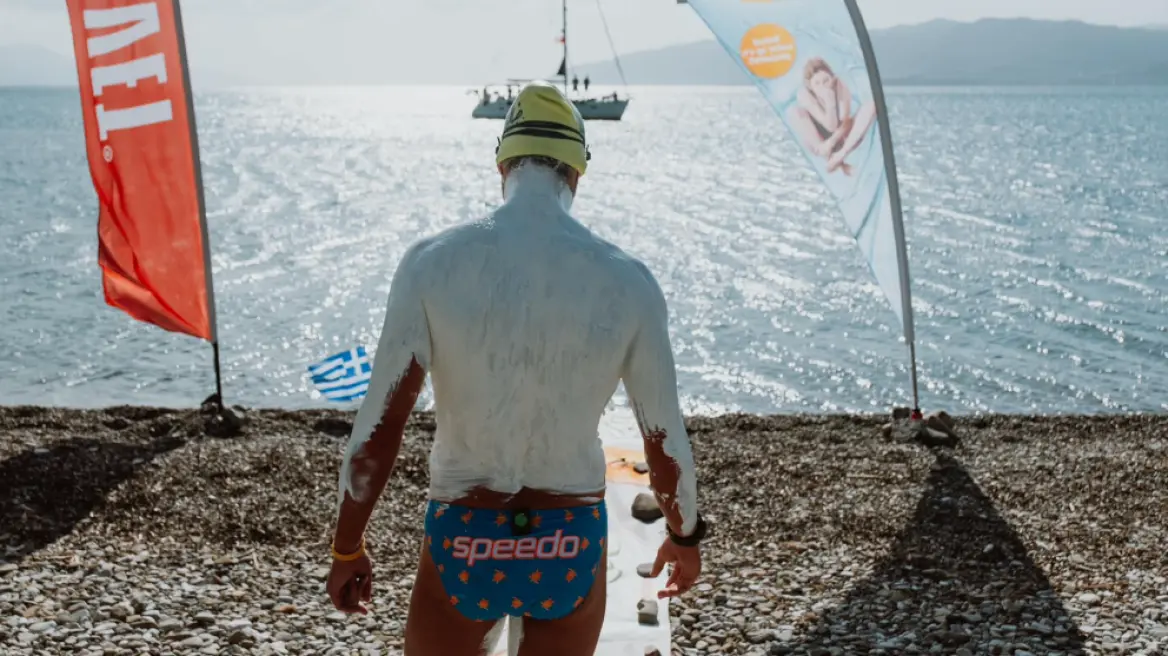 Ο Ματιέ Μπον επέλεξε τον Κορινθιακό Κόλπο, επειδή μπορούσε να κολυμπήσει περισσότερα από 100 χιλιόμετρα σε ευθεία γραμμή, καθιστώντας τον ιδανική τοποθεσία για την πρόκληση.