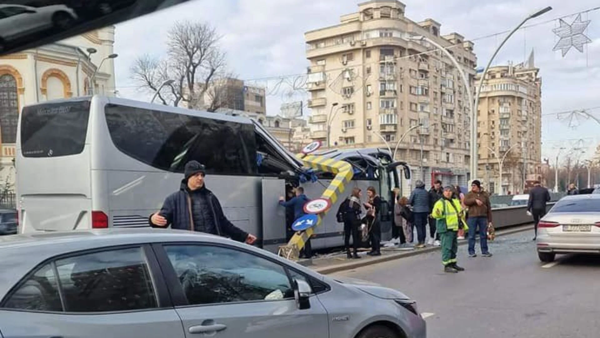 Όπως μετέδωσε το Οbservator Antena 1, σύμφωνα με την ΕΡΤ, το τροχαίο συνέβη όταν το λεωφορείο είχε αναπτύξει υπερβολική ταχύτητα και παραβίασε πινακίδα σχετικά με το όριο ύψους. Ως εκ τούτου, το όχημα κόλλησε σε μπάρα η οποία συνέθλιψε την οροφή. Μετά την πρόσκρουση, τα παράθυρα του πούλμαν έσπασαν, όπως μεταδίδεται.