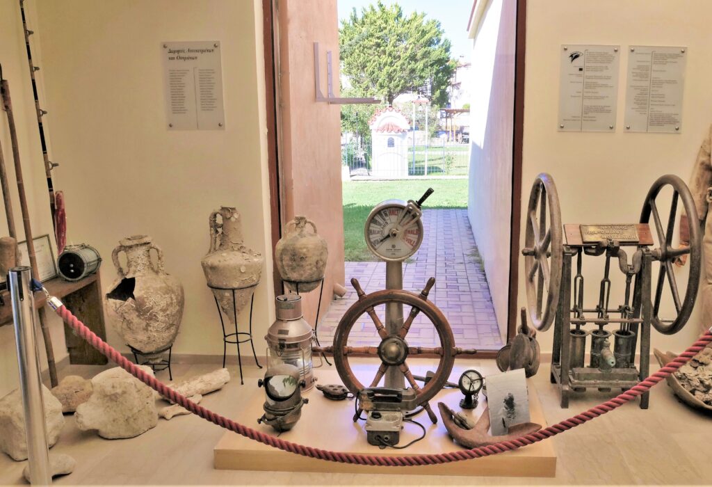 Στα μοναδικής σημασίας εκθέματα στο μουσείο, συμπεριλαμβάνεται ο πρώτος εξοπλισμός κατάδυσης και συγκεκριμένα η στολή μηχανικού από το 1870, καθώς και η χειροκίνητη αντλία αέρα από την παλιά Κούταλη. «Πρόκειται για έναν σπάνιο μηχανισμό κομπρεσέρ χορήγησης του αέρα στις πρώτες στολές των δυτών, ο οποίος μεταφέρθηκε από τις “χαμένες πατρίδες”», τόνισε και πρόσθεσε: «η σπογγαλιεία ανθίζει στην χώρα μας από τον 16ο-18ο αιώνα. Παλαιότερα οι σφουγγαράδες βουτούσαν κρατώντας τη σκανταλόπετρα χωρίς εξοπλισμό και χωρίς αέρα».