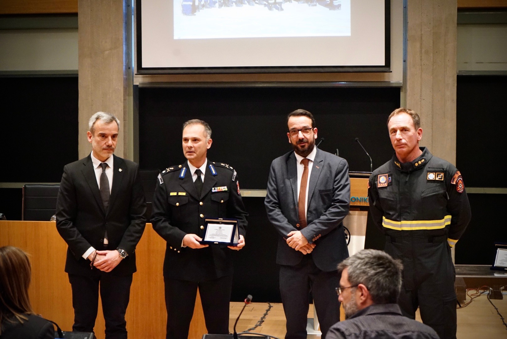 Την τιμητική πλακέτα παρέλαβαν εκ μέρους της 2ης ΕΜΑΚ ο διοικητής Αριστείδης Κατιρτζίδης και ο αντιπύραρχος, Μιλτιάδης Καραγεωργιάδης, ενώ από το ΕΚΑΒ την παρέλαβε η γιατρός, διευθύντρια του παραρτήματος Θεσσαλονίκης, Χριστίνα Καραμπελίδου.