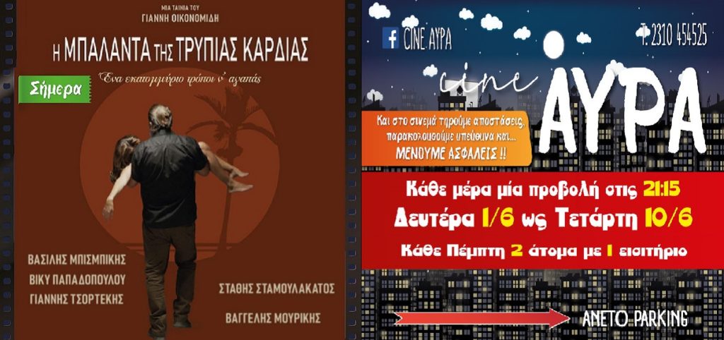 Ξεκινά η λειτουργία του θερινού κινηματογράφου “cine ΑΥΡΑ”, στον Δήμο Καλαμαριάς δυναμικά και φέτος, με την πολυαναμενόμενη ελληνική κωμωδία του Γιάννη Οικονομίδη: “Η Μπαλάντα της Τρυπιας Καρδιάς ”