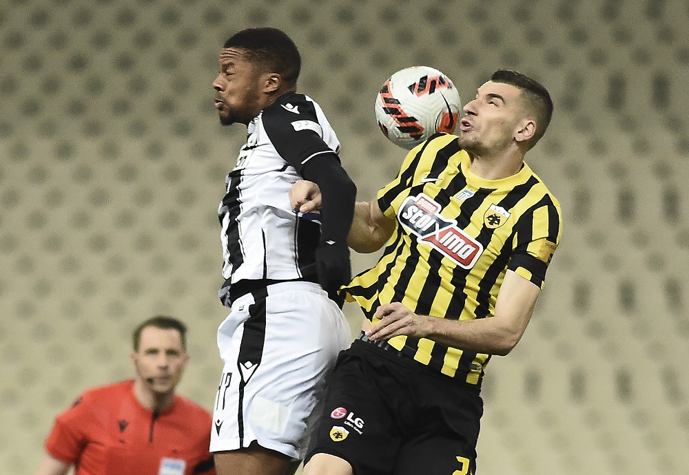 Ο ΠΑΟΚ είχε την κατοχή της μπάλας στο ξεκίνημα του παιχνιδιού, όμως οι γηπεδούχοι ήταν επικίνδυνοι στις αντεπιθέσεις, χωρίς ωστόσο να δημιουργήσουν τη μεγάλη ευκαιρία. Ήταν, βέβαια, άτυχοι ξανά, αφού όπως και στο ματς της Τούμπας είδαν ένα γκολ τους να ακυρώνεται για οφσάιντ στο… χιλιοστό. Στο 15΄ απο εκτέλεση φάουλ του Άμραμπατ, ο Μήτογλου σκόραρε με προβολή, όμως στον επανέλεγχο της φάσης από τον VAR, υποδείχθηκε σε αντικανονική θέση. Η ΑΕΚ πήρε να ηνία μετά τα πρώτα 20-25 λεπτά, χωρίς ωστόσο να γίνει απειλητική. Γενικά σε ολόκληρο το πρώτο 45λεπτο διεξήχθη ένα παιχνίδι με πολλές προσωπικές μονομαχίες, κυρίαρχο στοιχείο τη δύναμη και ελάχιστες -μάλον «μηδενικές»- φάσεις.