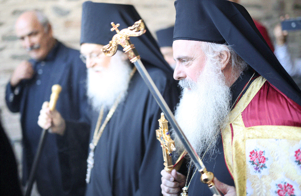 Τον Σεβασμιώτατο υποδέχθηκε ο Καθηγούμενος της Ιεράς Μεγίστης Μονής Βατοπαιδίου Γέροντας Εφραίμ και η Αδελφότητα της Μονής στην πύλη της Μονής και ακολούθησε δέηση στο Καθολικό της Μονής.